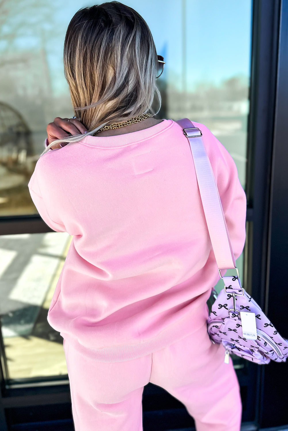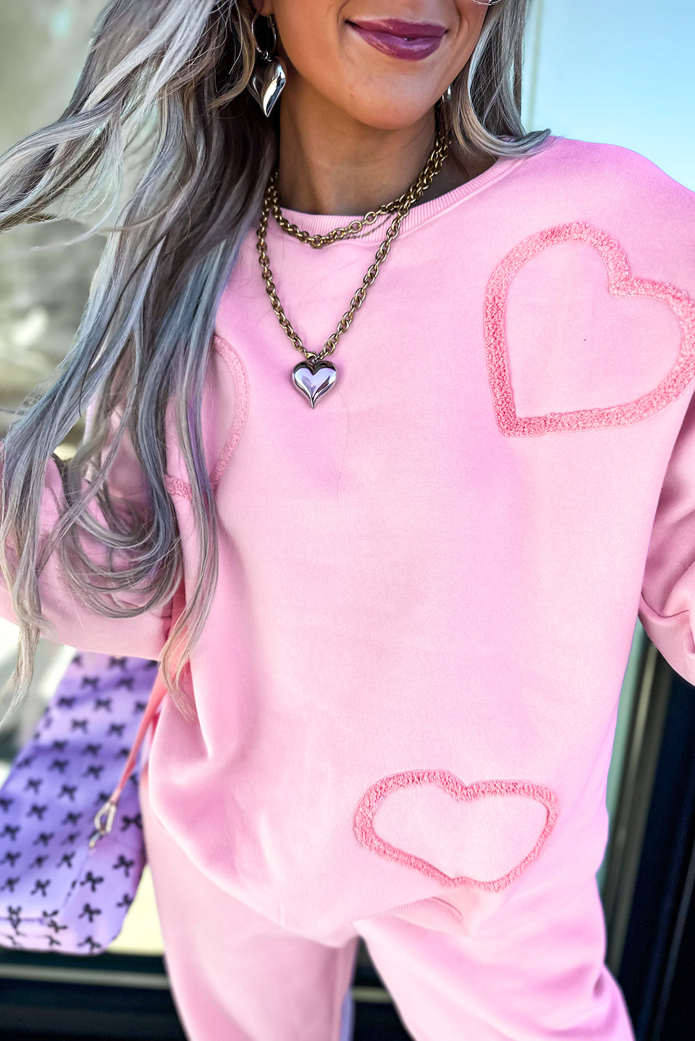 Phalaenopsis Chenille Heart Pattern Casual Pants Set