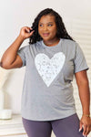This Heart Graphic Cuffed Short Sleeve T-Shirt is both cute and trendy. The heart graphic print adds a touch of sweetness, while the cuffed short sleeves give it a stylish and modern look. Whether you're dressing it up or keeping it casual, this t-shirt is sure to make a statement.