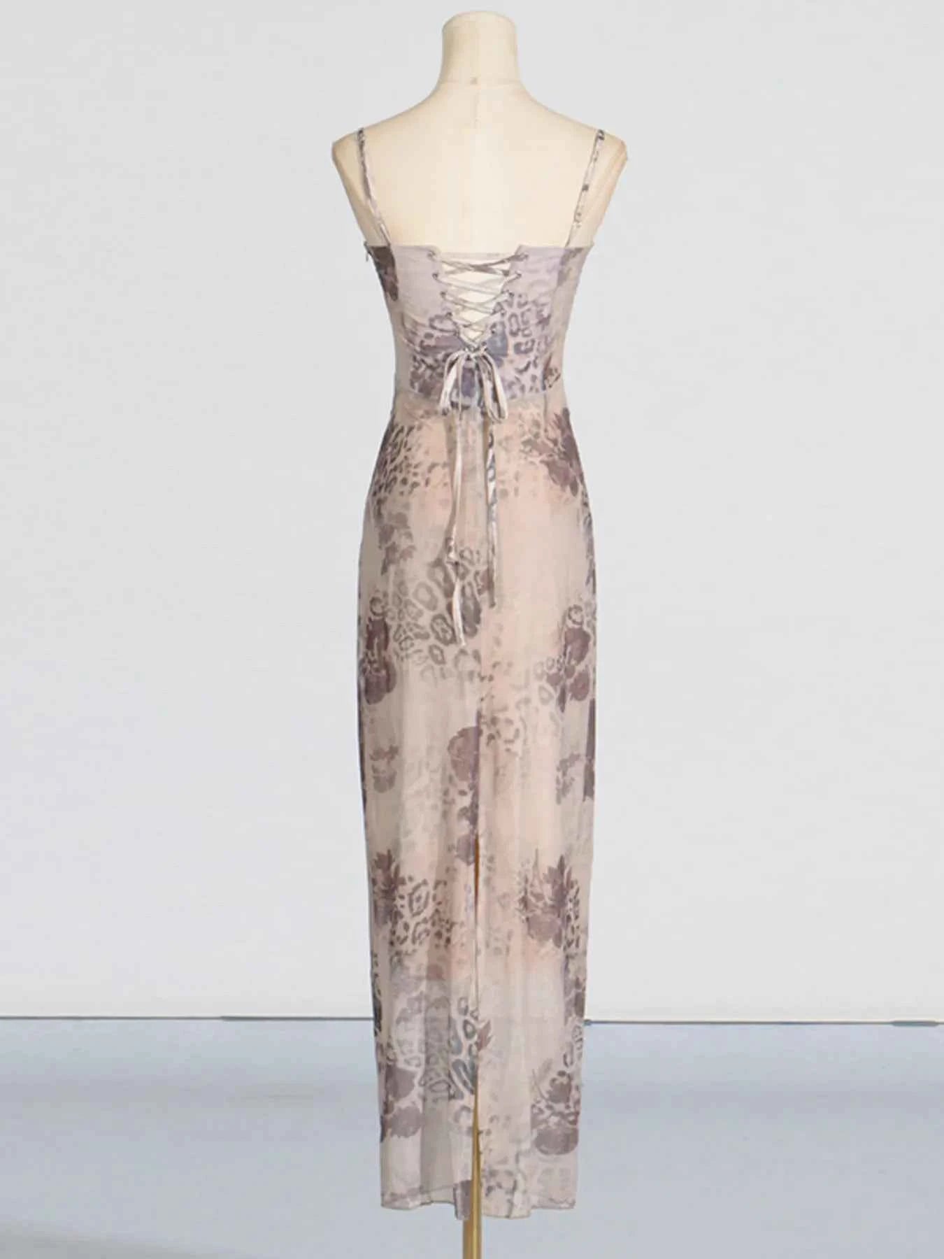 Printed Sweetheart Neck Bodycon Maxi Dress