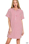 Zenana Stripe Collared Half Button Up T-Shirts Dress