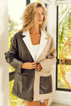 BiBi Faux Leather Color Block Single Blazer