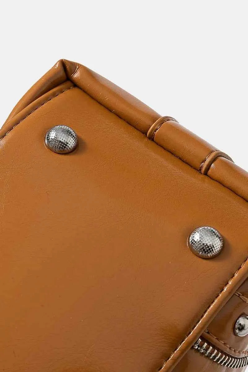 Fame Faux Leather Studded Trim Shoulder Bag