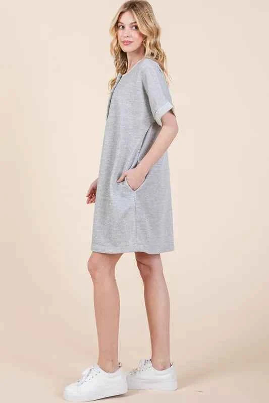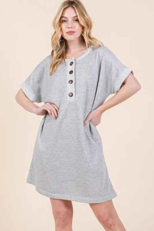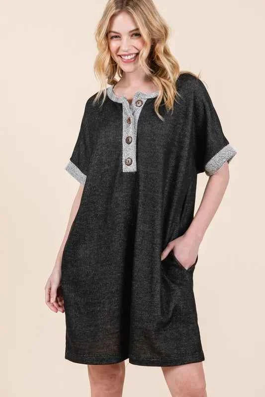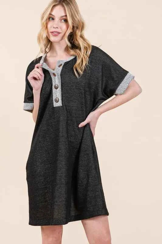 BOMBOM Casual Contrast Trim Henley Dress BOMBOM Casual Contrast Trim Henley Dress