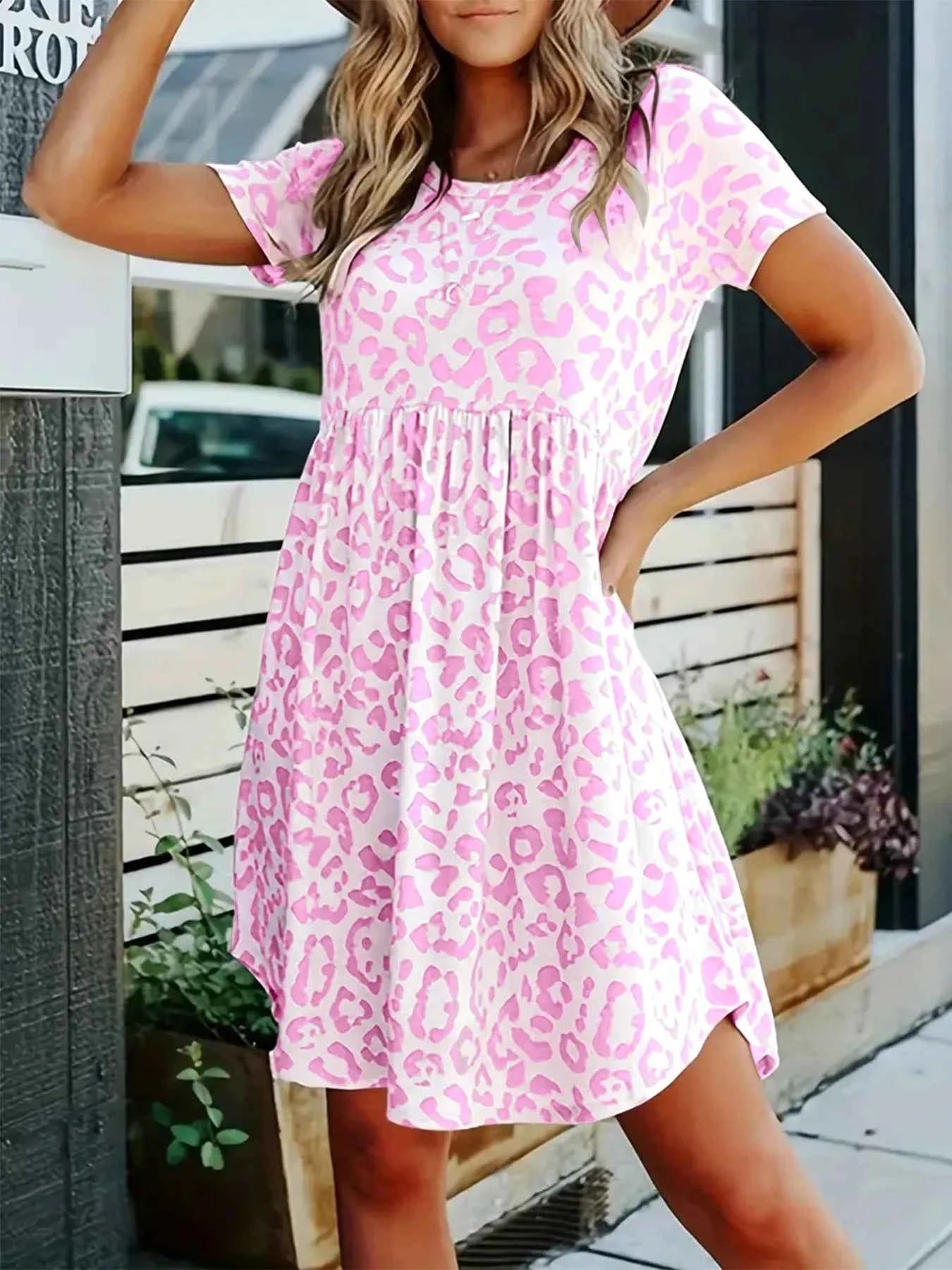 Leopard Print Short Sleeve Casual Dress Leopard Print Short Sleeve Casual Dress