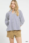 Umgee Striped V-Neck Button Down Top