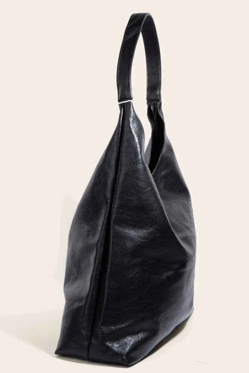 Fame Faux Leather Handle Knitted Tote Bag Fame Faux Leather Handle Knitted Tote Bag