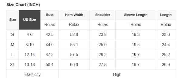 See size chart for approximate measurements.