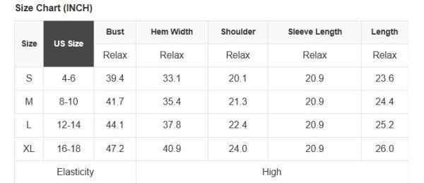 See size chart for approximate measurements.