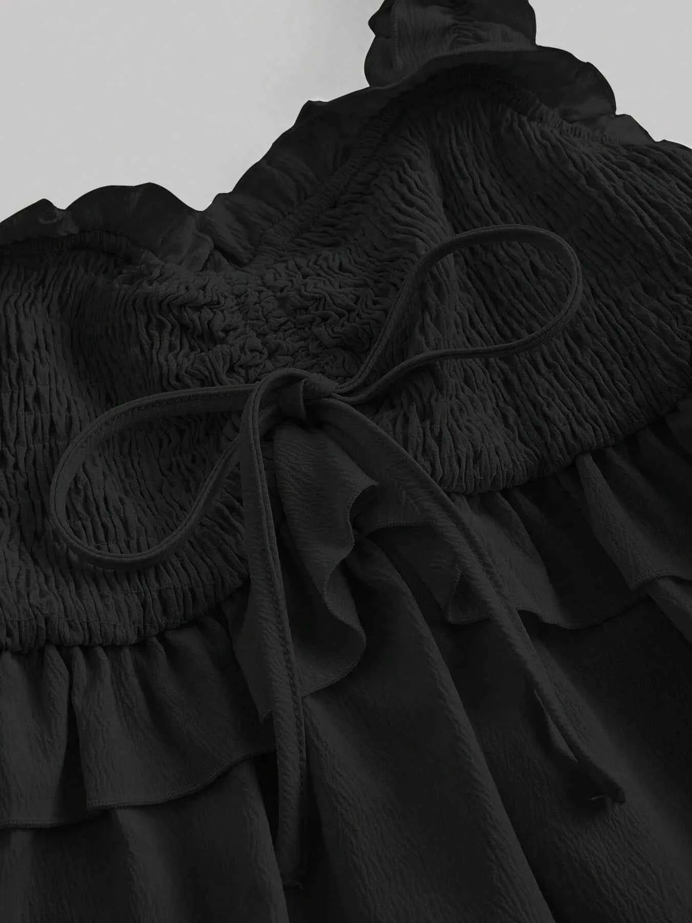 Tie-Shoulder Sweetheart Neck Mini Dress -