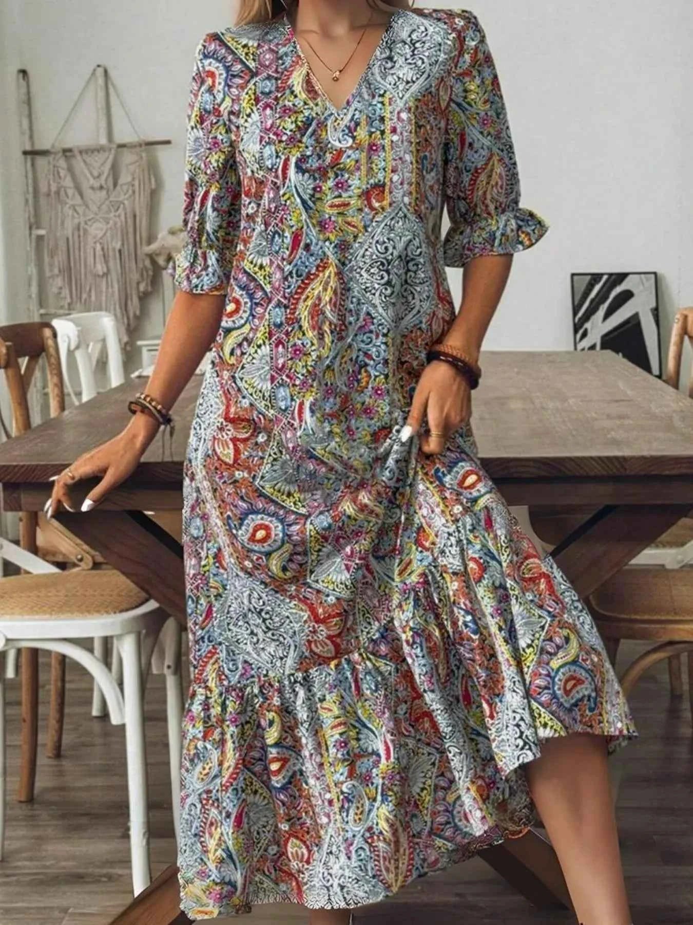 Full Size Bohemian Paisley Print V-Neck Midi Dress Plus Size Full Size Bohemian Paisley Print V-Neck Midi Dress Plus Size
