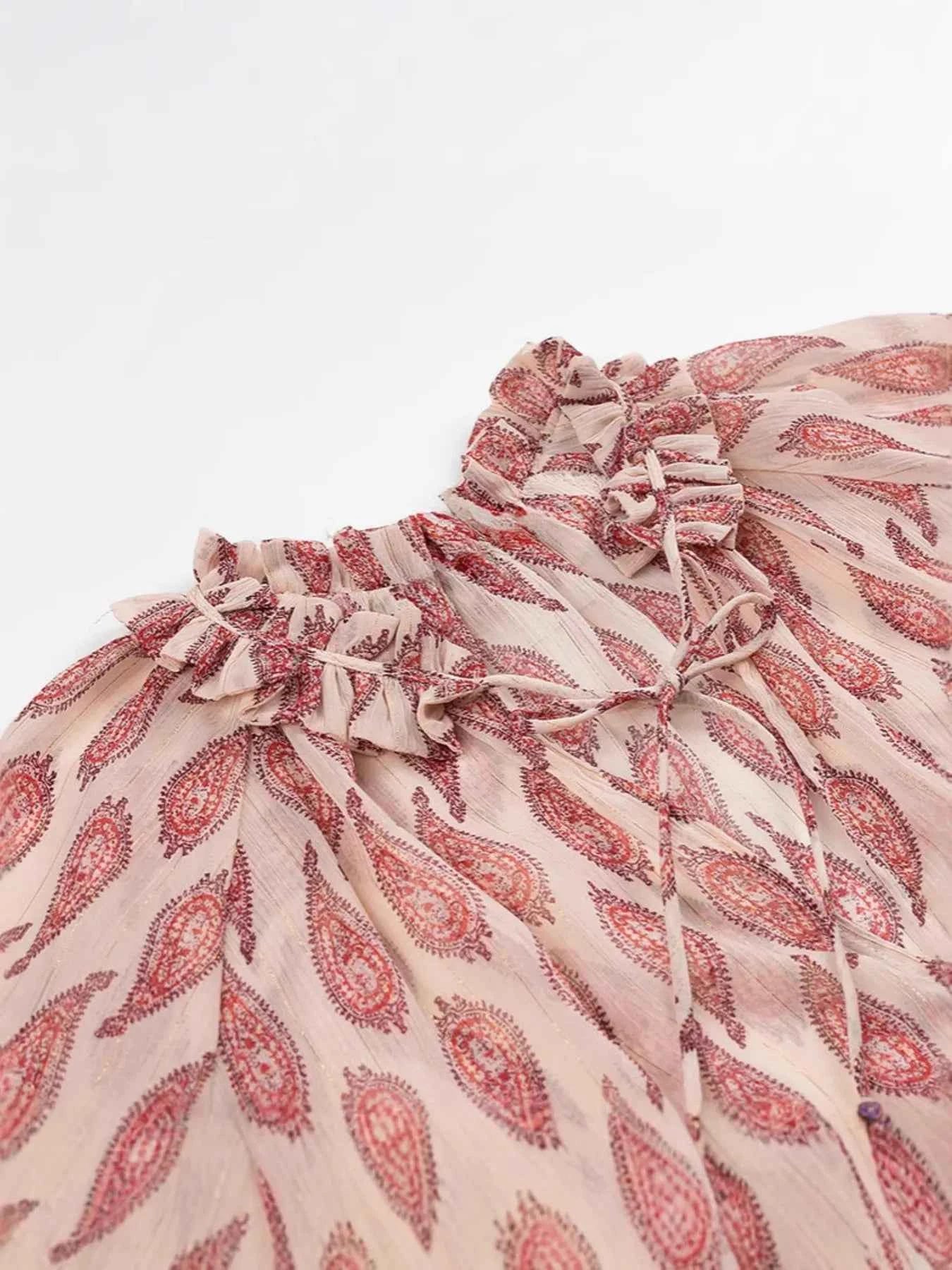 Paisley Print Frill Tie Neck Long Sleeve Blouse Paisley Print Frill Tie Neck Long Sleeve Blouse