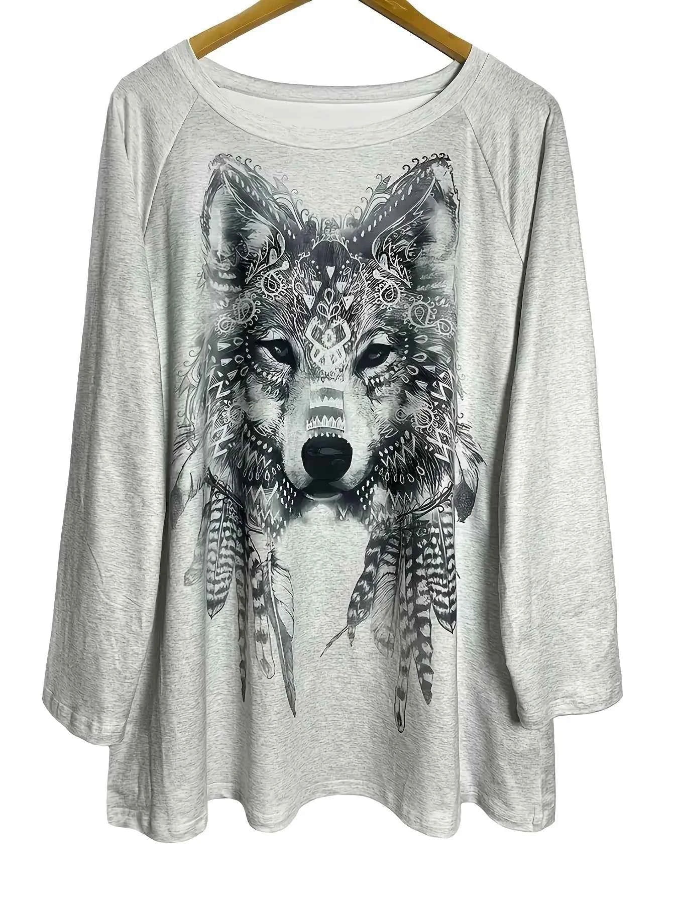 $60.08 USDBohemian Wolf Print Long Sleeve T-Shirt