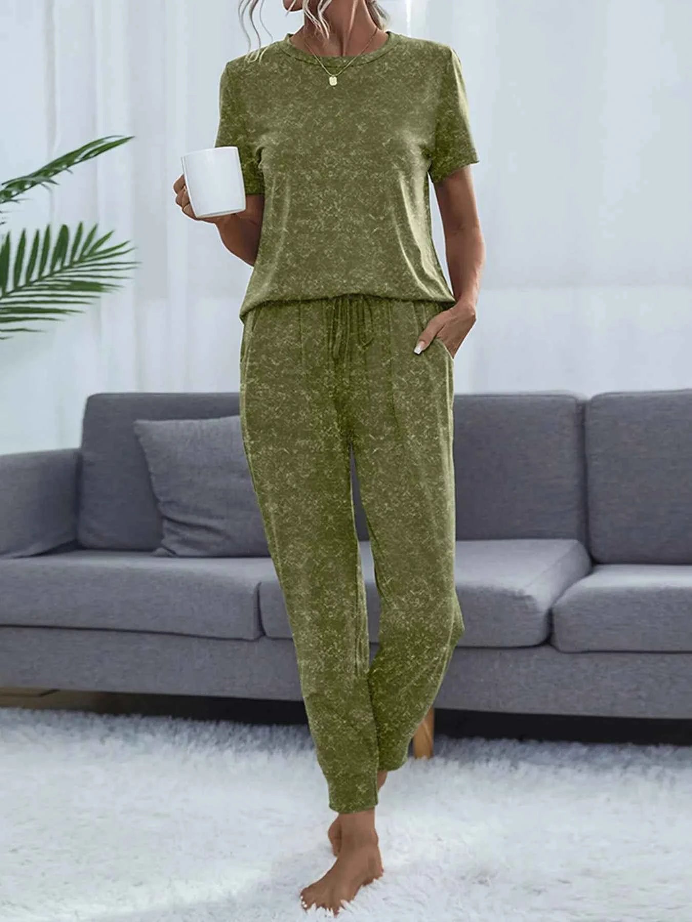 Round Neck Short Sleeve Top and Pants Set Round Neck Short Sleeve Top and Pants Set