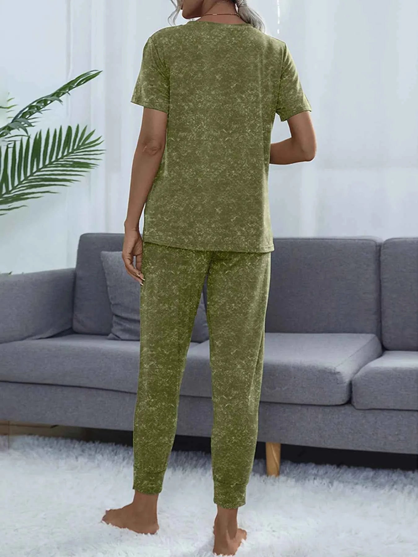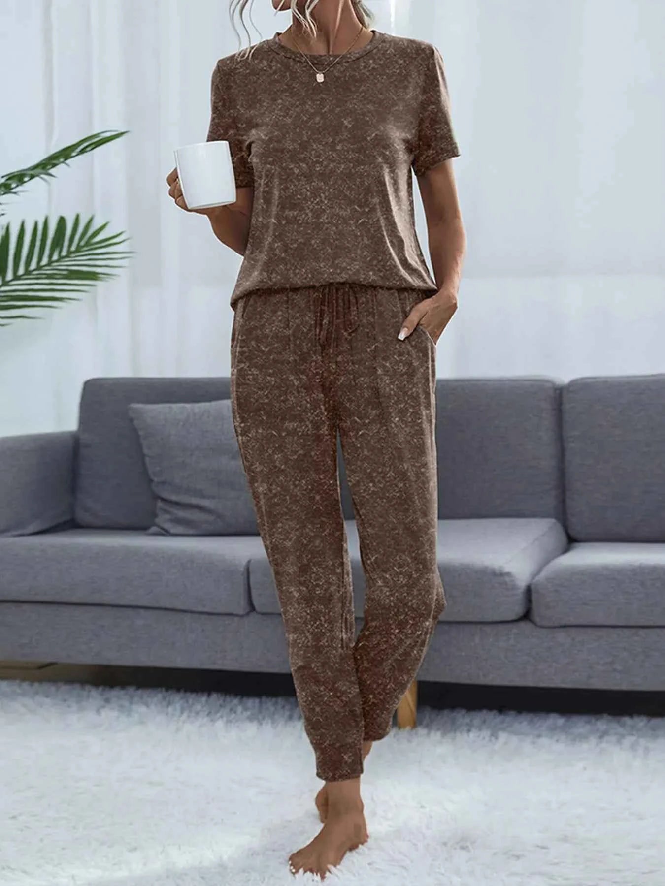 Round Neck Short Sleeve Top and Pants Lounge Set Round Neck Short Sleeve Top and Pants Lounge Set