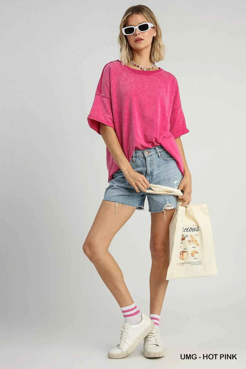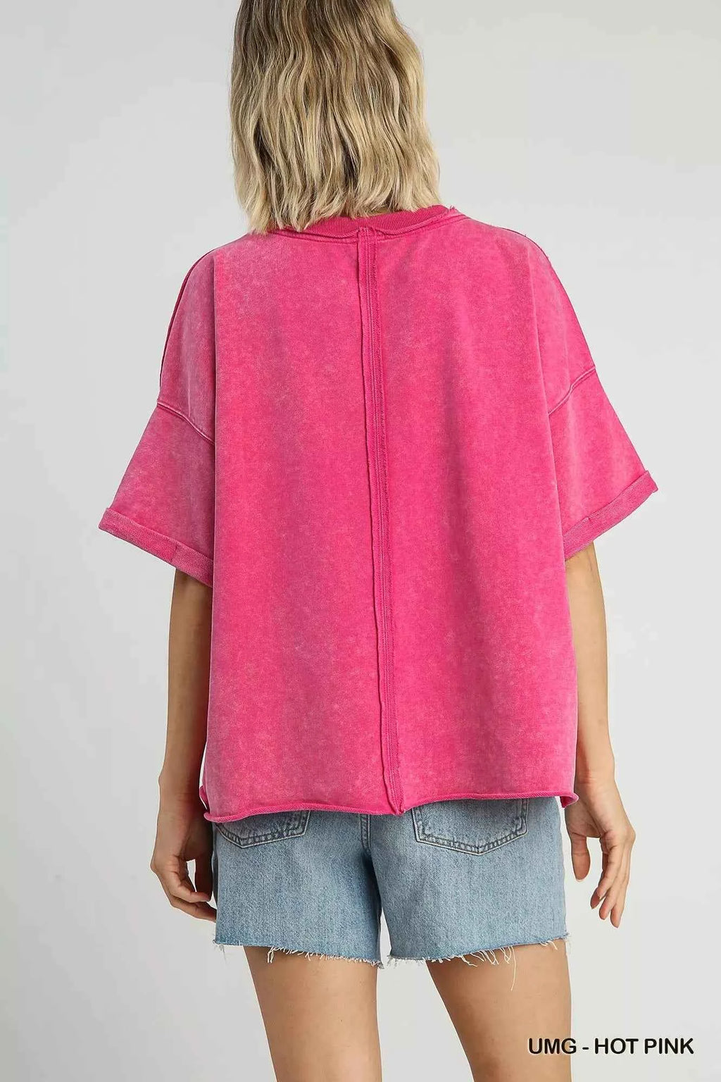 Umgee Mineral Wash Round Neck Top UMG-HOT PINK de6ecb11-2aa6-42fa-abcd-c5907962cab0-Max-Origin